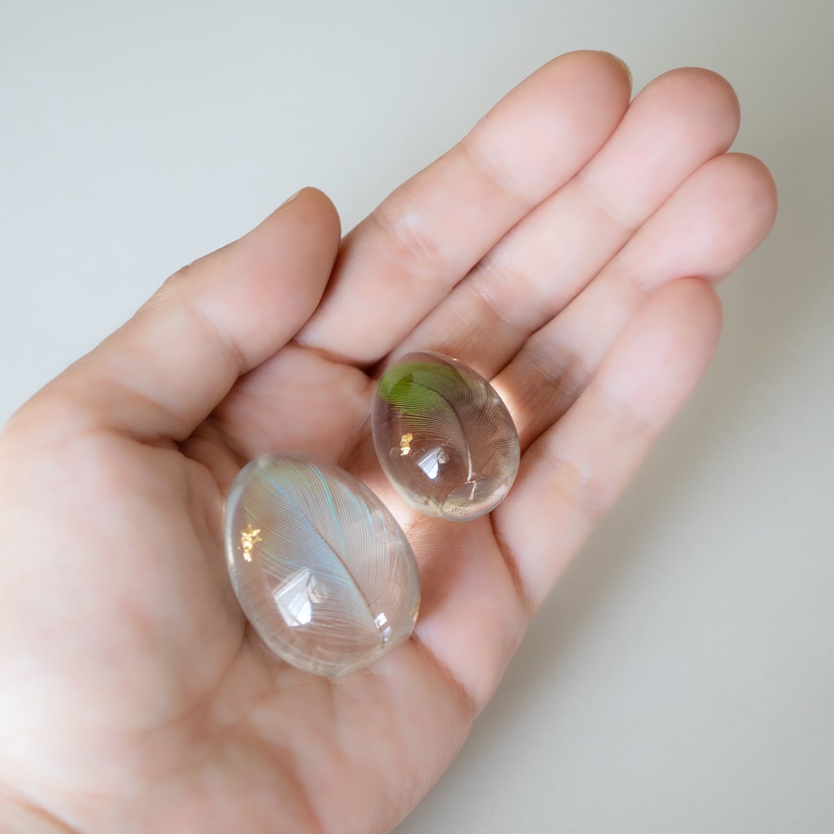 < SL2個セット> うちの子の羽根で作る 卵型オブジェ(愛鳥さんの羽根入り置物)