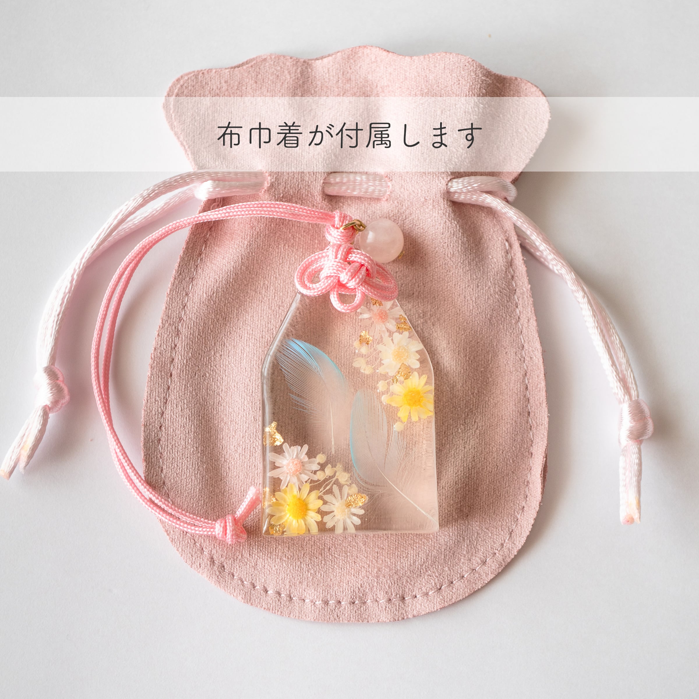 うちの子の羽根入りお守り - フローラル - < 側面名入れ >